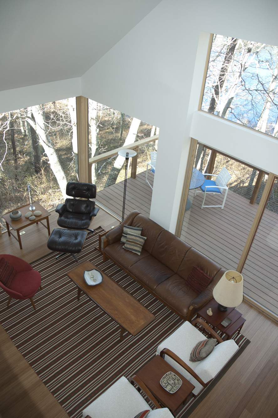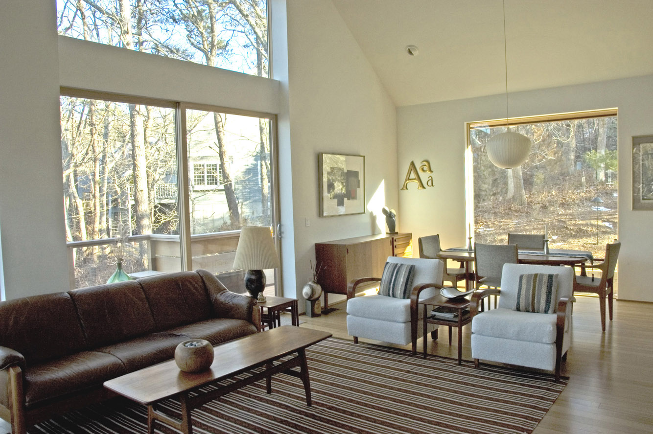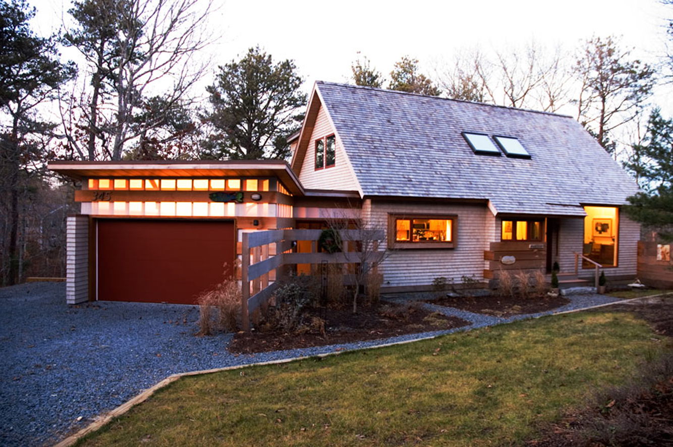 Andersen Miller Design, Designer with Principal, Client and Consultant Coordination, Full Documentation, Construction AdministrationReinterpreting an unusual Cape cottage built in the 1970s, the simple Gable structure is opened up towards a view to a nearby pond and forest, and the vertical connections between living spaces and loft areas are reinvigorated. A new garage / workshop area is added as a cedar slat covered light-box, maintaining local materiality in a mode of critical regionalism.