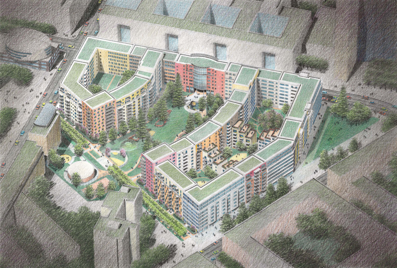Mixed Use Development, Masterplan and Building Designs HDS Architecture, Designer and Production team memberBased on the typical courtyard development model in Berlin, the specific buildings of the master plan were parceled out to three designers, our team developed the overall guidelines and Schematic Design for three of the buildings.