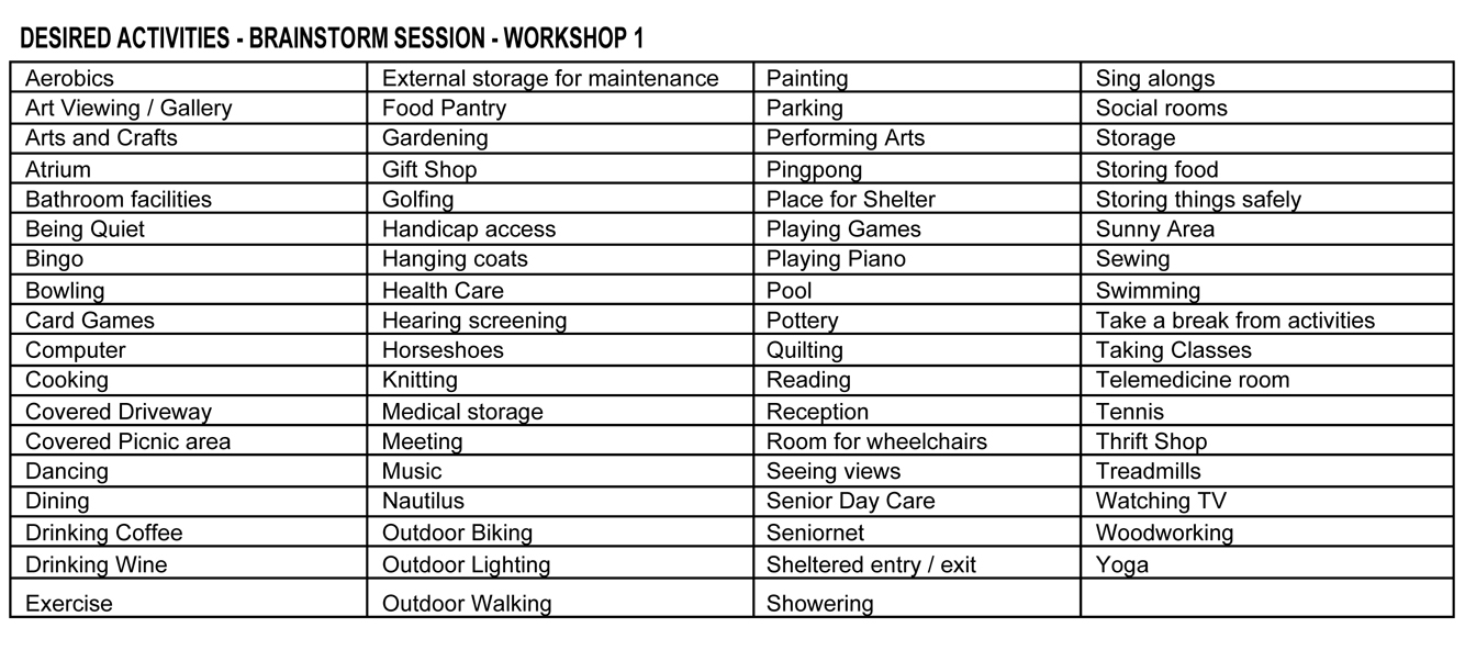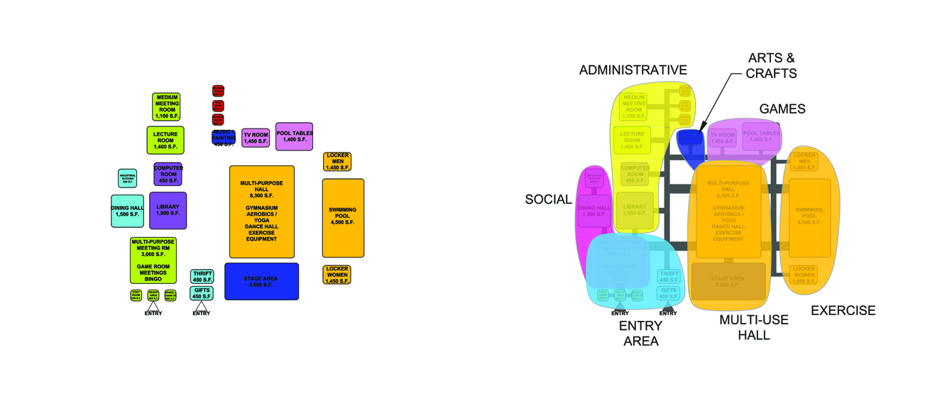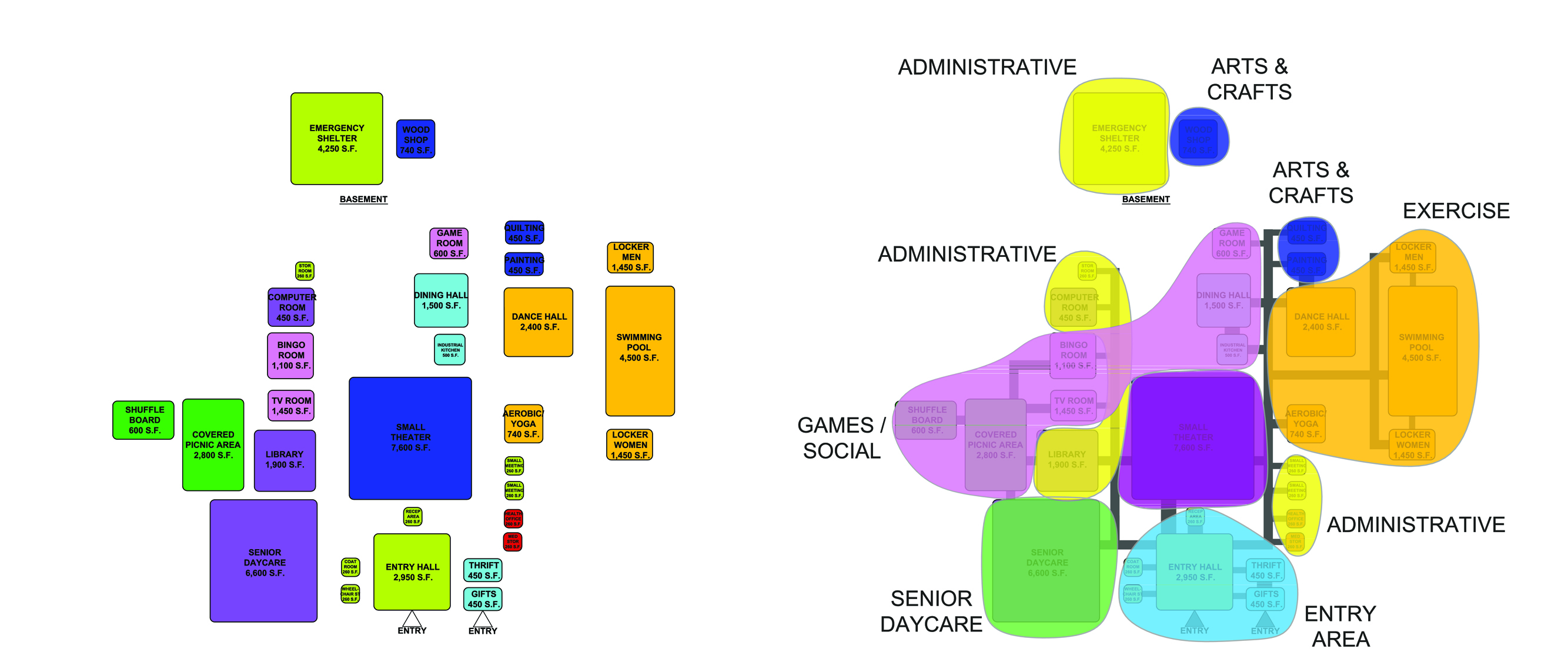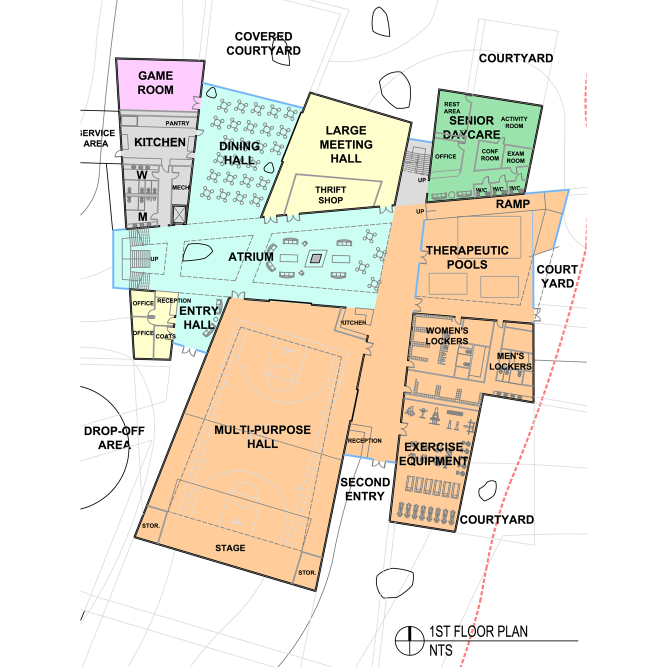Westford Senior Center Boston Architectural College Masters Thesis, StudentThis thesis explores potential innovations in participatory practices in architecture and design. The process was developed over the course of 1.5 years, and included a series of 8 inclusive design charettes with a group of Westford seniors interested in developing a new, activity focused senior center. The building design evolved between the architectural interests of the BAC thesis panel, and the real needs and interests of the future inhabitants. The Seniors were included in all aspects of the process including establishing and prioritizing the hosted activities and program for the building, program adjacencies and configurations, site design and building placement, concept definition and scheme development, façade composition, and materiality. In this way, the future inhabitants were involved in every step of the design process including the fundamental and artistic inspiration that generated the building form. Review of presentations and interactive models and drawings were employed along the way to test and modify ideas. Each workshop became a design project unto itself, picking up on the previous parameters and designing methods of interaction and idea creation that could be performed with an audience largely unfamiliar with architecture and design processes. Guided by excellent thesis panel members, philosophical and architectural precedents, and rigorous experimentation, the effort resulted in a project that bridged the worlds of high design and local community. The thesis makes a case for a more democratic design process in all major public and civic developments – so that the shaping of the city empowers its inhabitants.